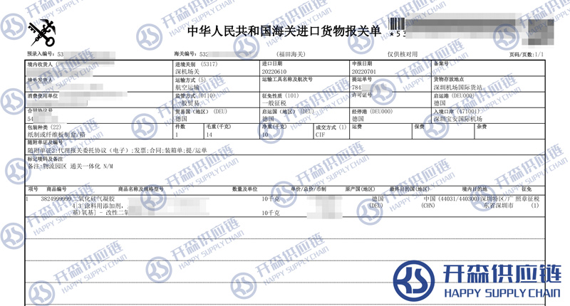 一、德國二氧化硅氣凝膠進(jìn)口報(bào)關(guān)代理案例詳情