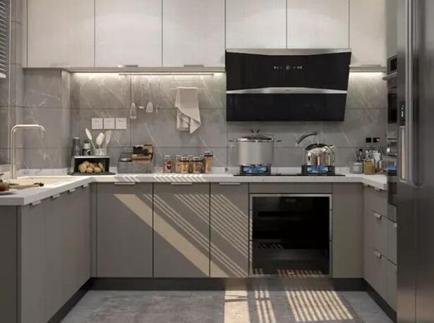 櫥柜,是指廚房中存放廚具以及做飯操作的平臺(tái)。使用明度較高的色彩搭配,由五大件組成,柜體,門板,五金件,臺(tái)面,電器。整體櫥柜,亦稱“整體廚房”,是指由櫥柜、電器、燃?xì)饩摺N房功能用具四位一體組成的櫥柜組合。