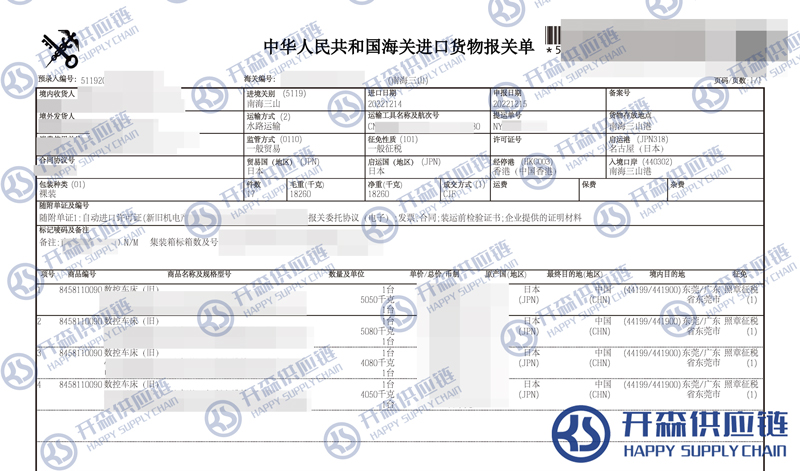 一、舊數(shù)控車床進(jìn)口報(bào)關(guān)代理案例詳情