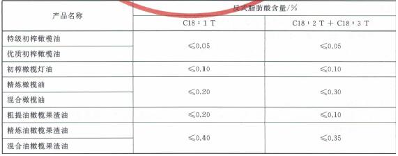 新增初榨橄欖燈油和混合橄欖油的限量,具體指標(biāo)見(jiàn)下圖。