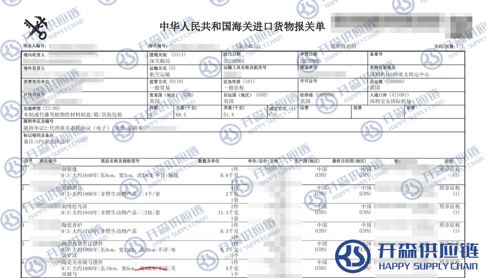 開(kāi)森進(jìn)口供應(yīng)鏈擁有古董藝術(shù)品進(jìn)口報(bào)關(guān)操作經(jīng)驗(yàn)及案例,十余年操作經(jīng)驗(yàn)及案例可供參考,可按需定制古董藝術(shù)品進(jìn)口方案,幫助客戶解決進(jìn)口難題,快速進(jìn)口清關(guān)到港到貨。